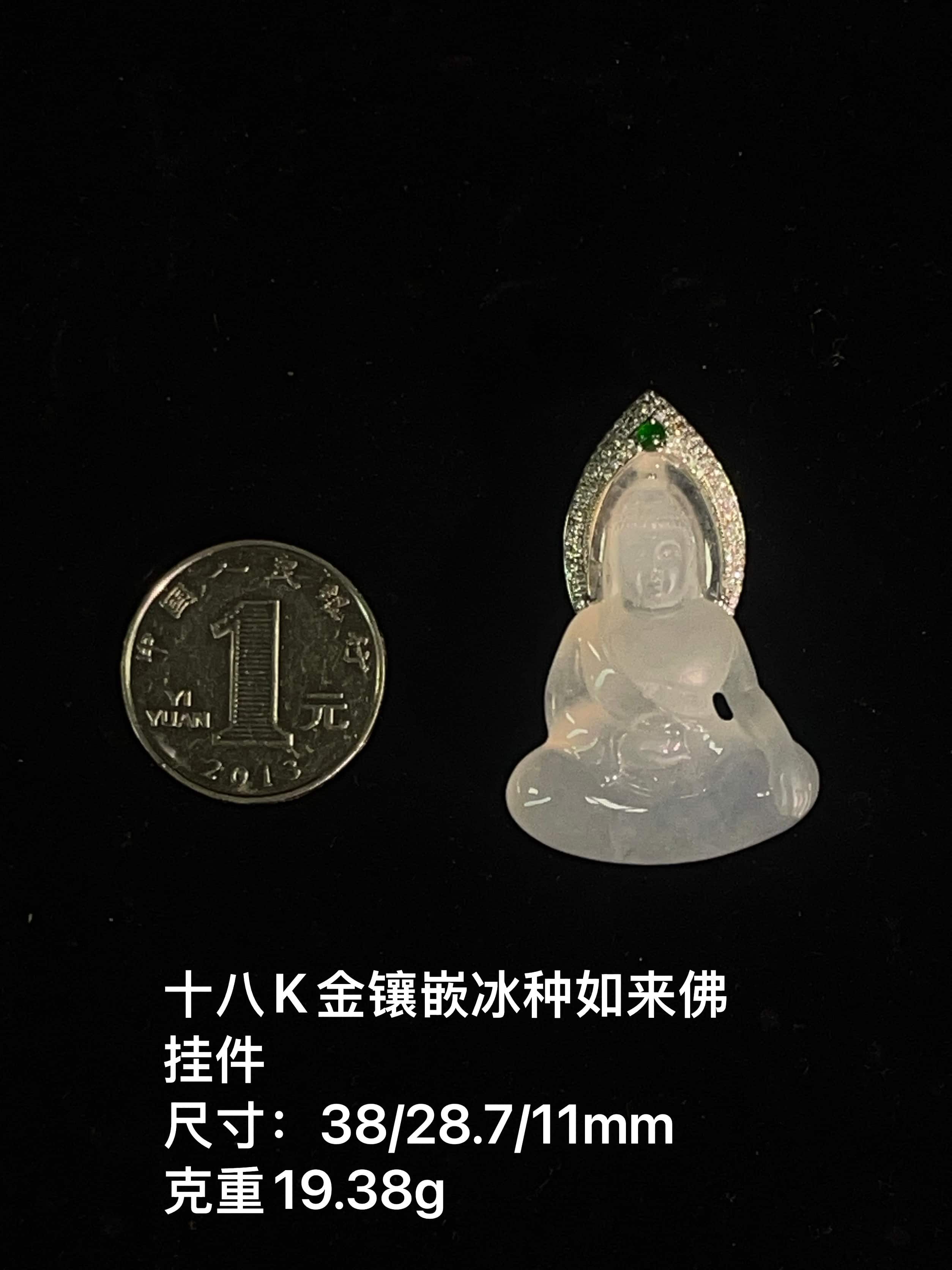 十八K金镶嵌冰种如来佛挂件
